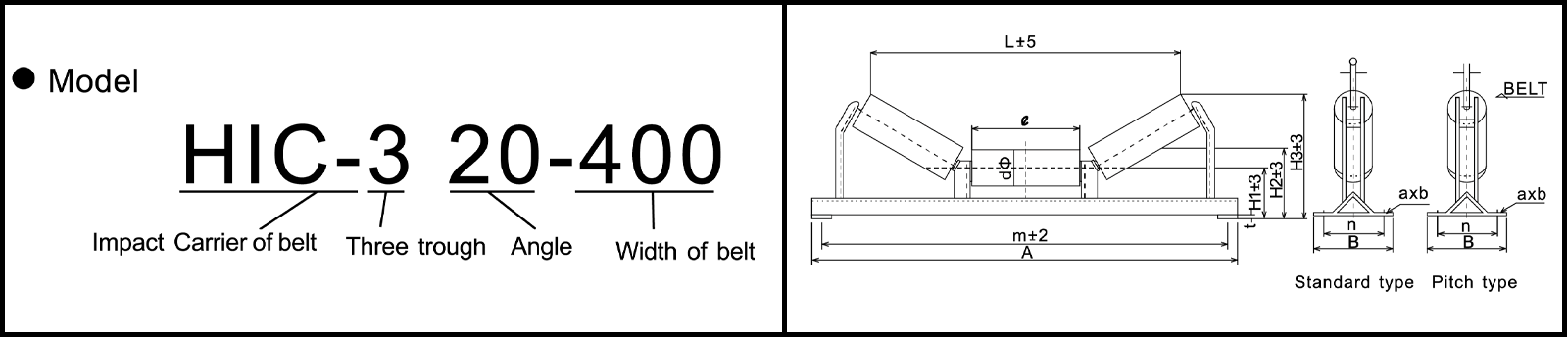 سه غلتک حامل از راه دور یک مؤلفه اصلی نوار نقاله های کمربند از بین می رود که در درجه اول برای حمل ماسه ، مواد معدنی و غیره استفاده می شود. به طور کلی در 20 یا 30 درجه تنظیم می شود ، اگرچه زاویه های دیگر می توانند برای برنامه های خاص سفارشی شوند. مواد شامل فولاد استاندارد ، با گزینه هایی برای روکش لاستیکی ، پلیمر یا فولاد ضد زنگ متناسب با نیازهای مختلف .