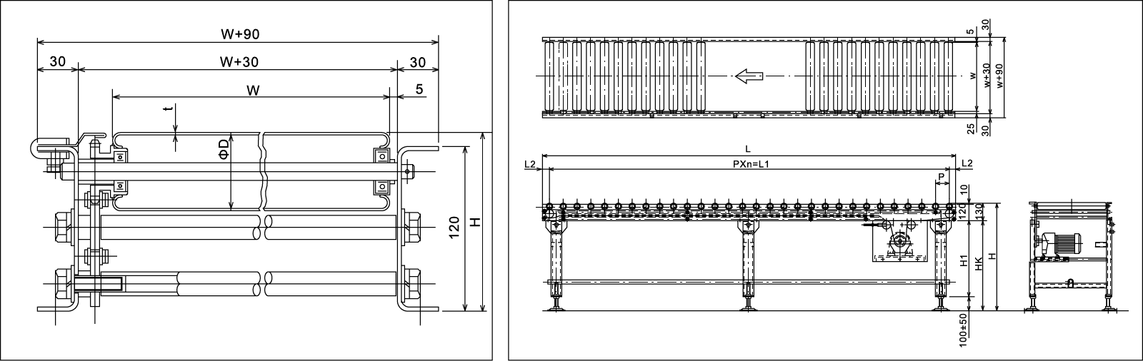 | عرض غلتکی | W (MM) | 200 ~ 600 | 200 ~ 600 | 200 ~ 600 | 700 ~ 1200 | 400 ~ 800 |