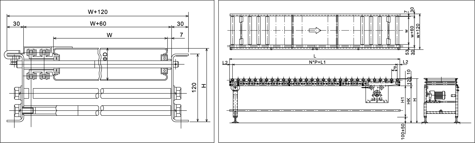 نقاله زنجیره ای محور یک نوار نقاله غلتکی متداول است. بر اساس پیکربندی زنجیره ای به انواع چرخش و دوتایی تقسیم می شود. نوار نقاله های زنجیره ای برای غلطک های متراکم مناسب هستند ، در حالی که نقاله های زنجیره ای دوتایی به طور گسترده ای مورد استفاده قرار می گیرند و مطابق با زنجیره زنجیره ای سازماندهی می شوند .
