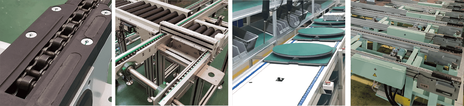 نقاله های زنجیره ای دو سرعته معمولاً در خطوط مونتاژ و پردازش برای حمل و نقل مواد استفاده می شوند. آنها از زنجیره های افزایش سرعت استفاده می کنند تا به سرعت کالاها را به همراه توابع متوقف شده در مکان های خاص یا توابع تجمع برای تنظیم فاصله جابجا کنند .
