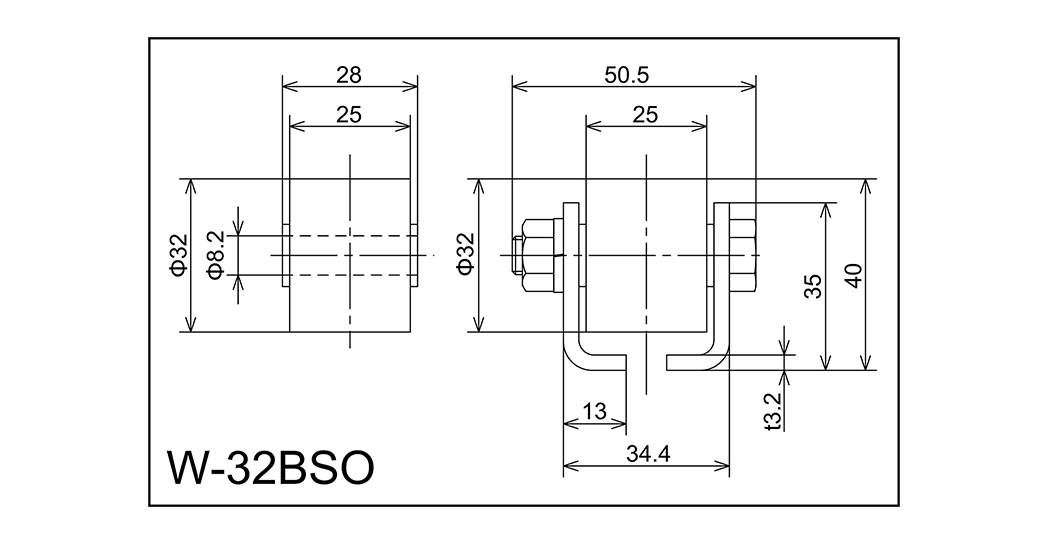 | W-32BSO | 32x25x8.2x28 | M8x45L | 35x34.4x13x50.5x3.2 | 40 | 1000 · 2000 · 3000 | 40 · 70 · 100 | 90 | A |