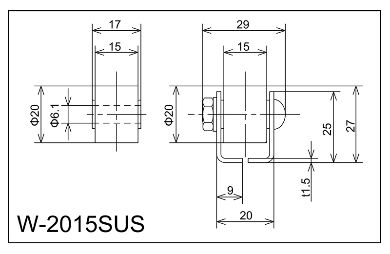 | W-2015 | 20x15x6.1x17 | M6x25L | 25x20 × 9x29x1.5 | 27 | 1000 · 1500 · 2000 | 25 · 30 · 35 | 30 | A |