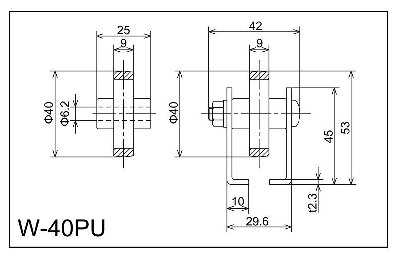 | W-40PU | 40x9x6.2x25 | M6x38L | 45x29.6x10x42x2.3 | 53 | 1800 · 2400 · 3000 | 50 · 75 · 100 · 150 | 30 | بوها | PU |