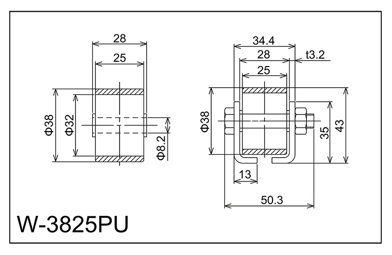 | W-3825PU | 38x25x8.2x28 | M8x48L | 35x34.4x13x50.3x3.2 | 43 | 1800 · 2400 · 3000 | 50 · 75 · 100 · 150 | 50 | بوها | PU |