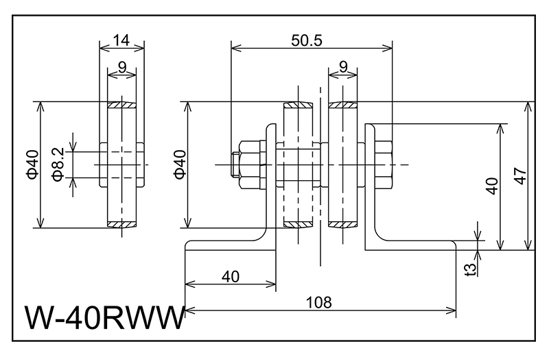 | W-40RUW | 40x9x8.2x14 | M8x55L | 46.3x60x33x71 × 23 | 54.3 | 1800 · 2400 · 3000 | 50 · 75 · 100 · 150 | 30 | k | PU |