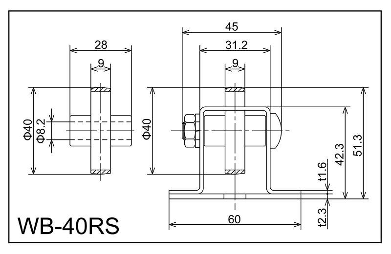 | WB-40RS | 40x9x8.2x28 | M8x40L | 42.3x60x31.2x45 × 23 | 51.3 | 1800 · 2400 · 3000 | 50 · 75 · 100 | 20 | ج | NBR |