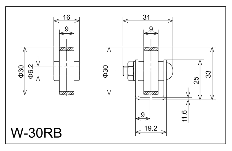 | W-30RB | 30x9x6.2x16 | M6x27L | 25x19.2x9x31x1.6 | 33 | 1000 · 1500 · 2000 | 35 | 25 | بوها | NBR |