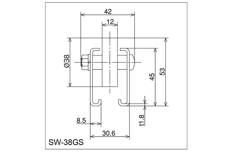 | SW-38GS | 27 × 12 × 12 38 | M6 × 38L | 45 × 31 × 8.5 × 42 × 1.8 | 53 | 1800 · 2400 · 3000 | 50 · 75 · 100 · 150 | 30 | POM |