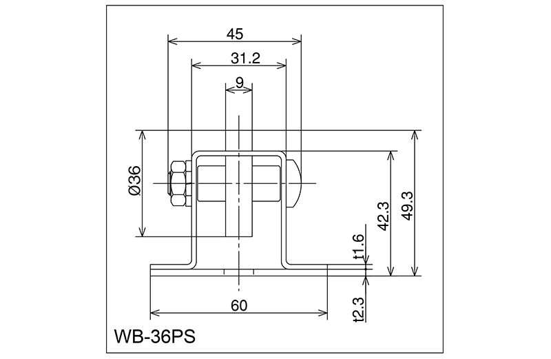 | WB-36PS | 28 × 9 × 9 36 | M8 × 40L | 42 × 60 × 32 × 45 × 1.6 2.3 | 49.3 | 1800 · 2400 · 3000 | 50 · 75 · 100 | 10 | POM |