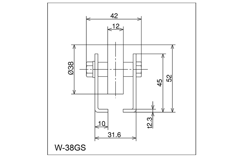| W-38GS | 27 × 12 × 12 38 | M6 × 38L | 45 × 32 × 10 × 42 × 2.3 | 52 | 1800 · 2400 · 3000 | 50 · 75 · 100 · 150 | 30 | POM |